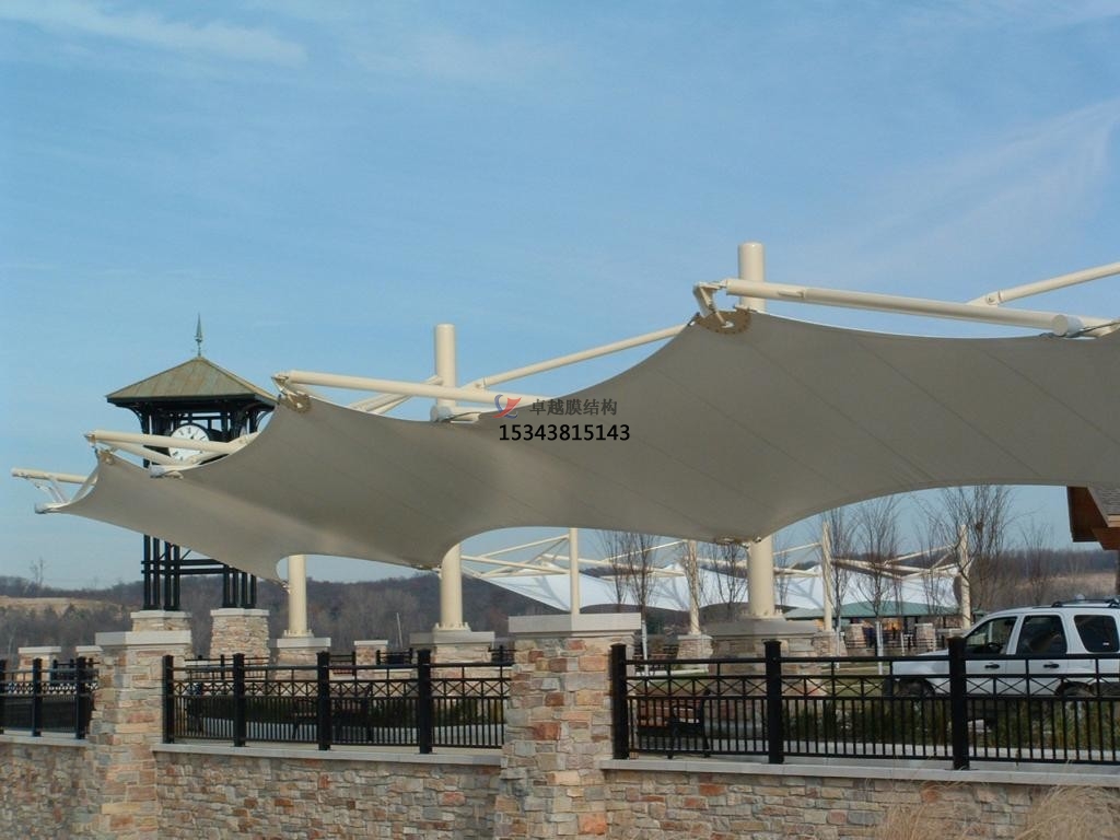 膜結(jié)構(gòu)工程規(guī)??纱罂尚?,有街頭小品,也有候機(jī)大廳、體育場(chǎng);壽命可長(zhǎng)可短,可以是臨時(shí)性帳篷,也可以是30年以上的長(zhǎng)期建筑;色彩可素可花,膜材料像布一樣可以染成各種花色,尤其是膜材料的半透明性能,使夜空中的膜建筑在燈光照射下,呈現(xiàn)出夢(mèng)幻般的色彩。