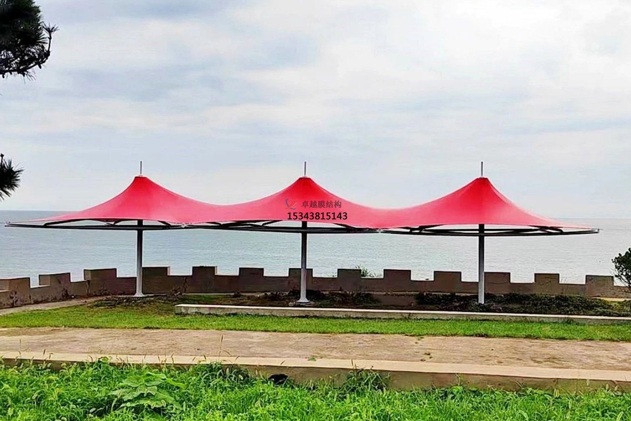 在實際應(yīng)用方面,景觀膜結(jié)構(gòu)的身影遍布各個領(lǐng)域。在城市公園與廣場,它常被用于搭建遮陽避雨的設(shè)施,如長廊、亭子等。這些膜結(jié)構(gòu)設(shè)施不僅為市民提供了舒適的休閑空間,讓人們在戶外活動時免受日曬雨淋,其獨特的造型和光影效果,還為公園增添了濃厚的藝術(shù)氛圍,成為人們拍照打卡的熱門地點。在體育場館,大型的膜結(jié)構(gòu)屋頂和看臺設(shè)計屢見不鮮。膜結(jié)構(gòu)減輕了建筑自重,提高了場館的抗震性能,在舉辦賽事時,獨特的膜結(jié)構(gòu)造型配合燈光效果,能夠營造出熱烈而獨特的觀賽氛圍,增強觀眾的觀賽體驗。商業(yè)街區(qū)和步行街也廣泛應(yīng)用景觀膜結(jié)構(gòu),可作為臨時的商業(yè)展示空間,或是裝飾性的建筑元素,吸引顧客的注意力,提升商業(yè)空間的品質(zhì)和吸引力,促進商業(yè)活動的開展。