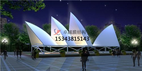 張拉膜景觀建筑排水設(shè)計(jì)依可然采用無組織排水或有組織排水方式。由于張拉膜景觀建筑的造型奇特,自由曲面,應(yīng)充分考慮造型與排水的合理方式。張拉膜景觀排水坡度要求大于一般建筑。平膜坡度15%~20%以上,雙曲膜脊度應(yīng)大于10%。同時(shí)膜面預(yù)張力1.0~2.0kN/m以上,避免膜材在雨水作用下發(fā)生較大變形,從而在膜面產(chǎn)生積水、兜水。膜面積水具有馬太效應(yīng)特點(diǎn),積水將導(dǎo)致局部凹陷變形,凹陷變形反過來加劇積水現(xiàn)象。足夠坡度、曲率和張力水平是保證排水順暢的必要條件。導(dǎo)水板、導(dǎo)水溝、落水管等張拉膜景觀設(shè)計(jì)宜與膜節(jié)點(diǎn)構(gòu)造設(shè)計(jì)協(xié)調(diào)。