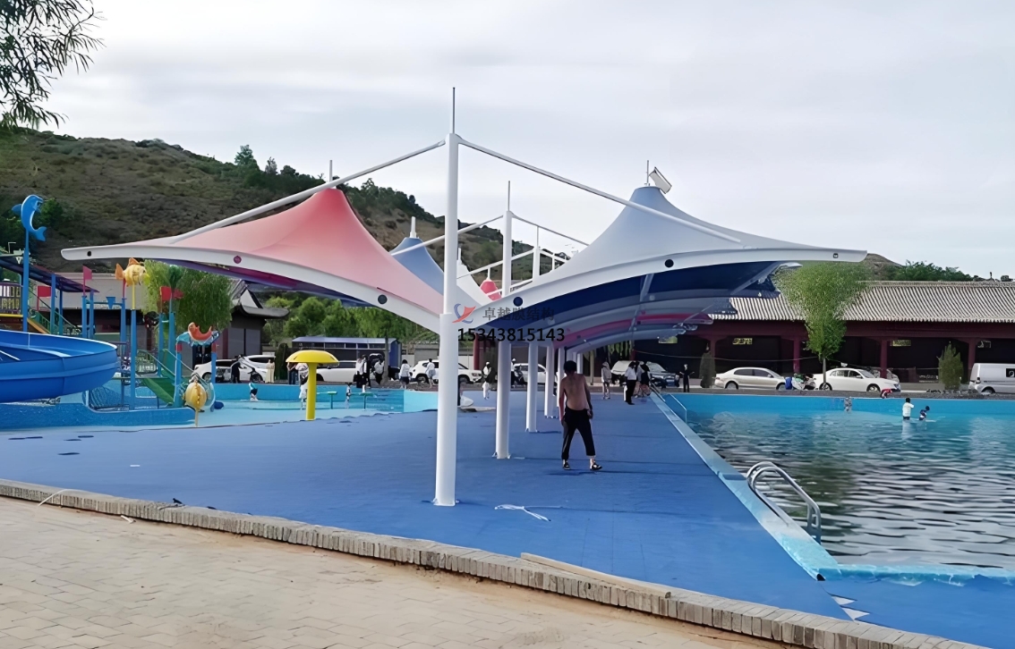 膜結(jié)構(gòu)遮陽棚是水上樂園中不可或缺的設(shè)計元素。它不僅能為游客提供遮陽、防雨的功能,還能與樂園的整體景觀融為一體,增添一道獨特的風(fēng)景線。