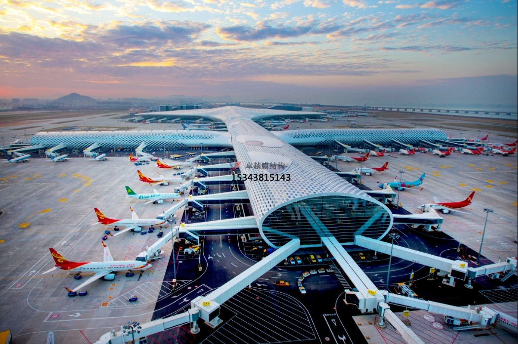 ETFE氣枕具有高度透明性,每層膜的透明度為90-95%,其透明度呈現(xiàn)于大部分太陽(yáng)光譜中,廣泛應(yīng)用于機(jī)場(chǎng),高鐵站,商業(yè)廣場(chǎng),城市建筑景觀等各類標(biāo)志性建筑屋面系統(tǒng)及外立面裝飾,尤其是結(jié)合LED燈光效果將各類結(jié)構(gòu)設(shè)施表現(xiàn)出無(wú)限的光彩和亮麗。