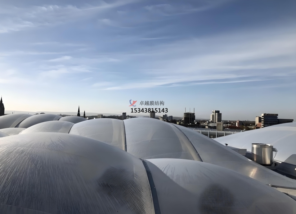ETFE膜溫度基本與周圍環(huán)境溫度保持一致,不像玻璃會(huì)隨吸收輻射能力的增加而升溫,因此材料自身吸收或輻射能量的能力并不十分關(guān)鍵。除了在材料上進(jìn)行的能量交換,由于氣體泄漏造成的能量損失可忽略不計(jì),氣枕式膜結(jié)構(gòu)連接構(gòu)件可有效避免空氣的外泄,同時(shí)構(gòu)件數(shù)量原本就較少,由此產(chǎn)生的節(jié)能效益相當(dāng)于玻璃的3~4倍。