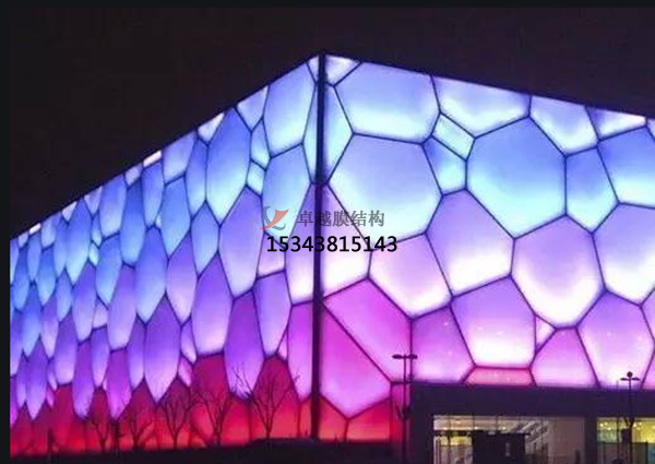 ETFE膜材更具代表性的建筑就是德國(guó)慕尼黑安聯(lián)體育場(chǎng)和我們北京的“水立方”更好的游泳中心。ETFE薄膜表面非常光滑,具有極佳的自潔性,灰塵、污漬隨雨水沖刷而去。對(duì)于外表的人工清潔,一般4年進(jìn)行一次即可。ETFE的厚度通常為0.05~0.25㎜,是透明建筑結(jié)構(gòu)中品質(zhì)優(yōu)越的替代材料。其使用壽命至少是25~35年,是永久性屋頂結(jié)構(gòu)的理想材料。