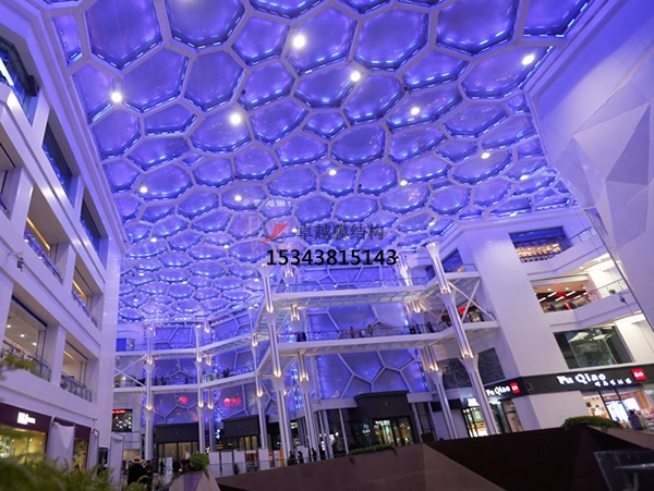 (4)顏色和透光性:ETFE膜材通常為無色透明狀,也可以做成白色、藍色或者其他顏色。根據(jù)需要也可以在無色透明或者其他顏色膜材上印制各種圖案。