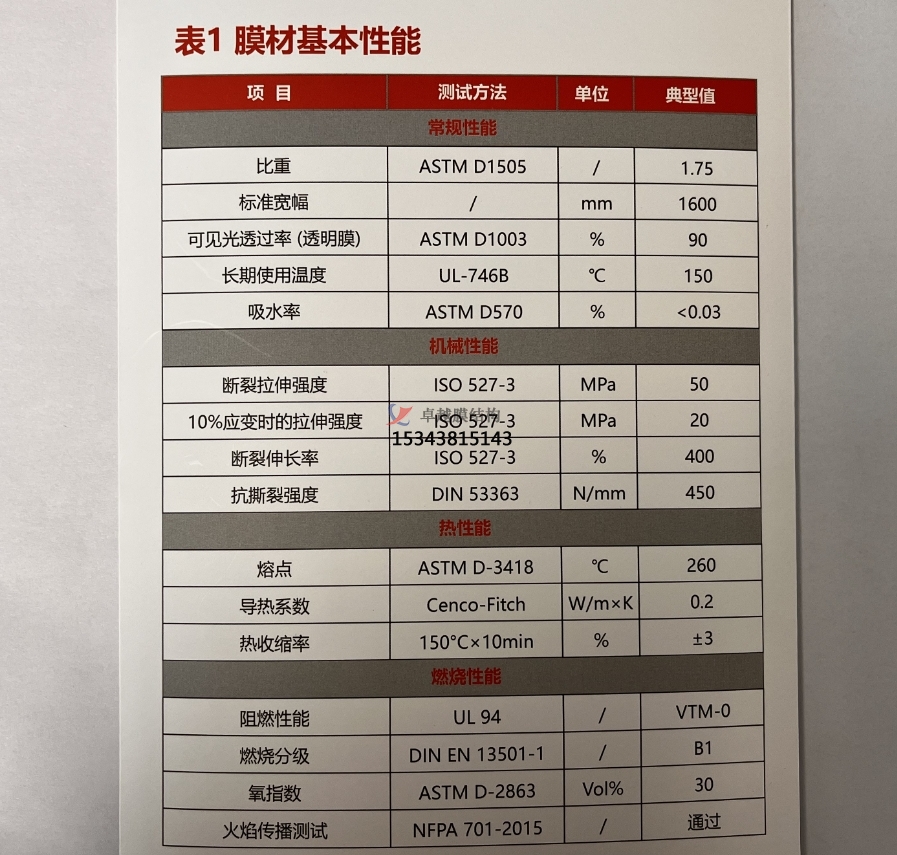 ETFE膜材性能特點: