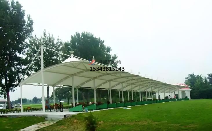 應(yīng)用場景:發(fā)球臺罩棚,看臺與觀賽區(qū),停車棚與配套設(shè)施,景觀與休閑區(qū)。發(fā)球臺罩棚為球員提供遮陽、避雨的空間,造型靈活美觀,與球場自然環(huán)境融合??磁_與觀賽區(qū)大跨度膜結(jié)構(gòu)看臺可覆蓋大量觀眾,輕量化設(shè)計(jì)降低基礎(chǔ)成本,同時(shí)具備通透視野。停車棚與配套設(shè)施則保護(hù)車輛免受紫外線、雨水侵蝕,常見于高爾夫球場入口或停車場。景觀與休閑區(qū)膜結(jié)構(gòu)為小品、廊道等提升球場景觀性,營造現(xiàn)代感。