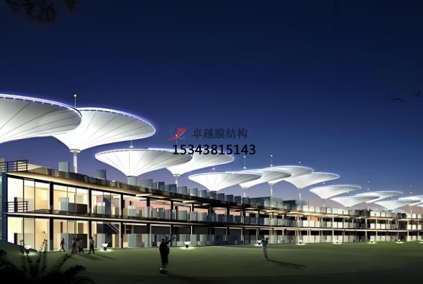 膜結(jié)構(gòu)的優(yōu)勢:造型自由,輕量化與大跨度,透光與節(jié)能,耐候性,自潔性。膜結(jié)構(gòu)的造型可設(shè)計(jì)為曲面、張拉式等復(fù)雜形態(tài),打破傳統(tǒng)建筑的死板,契合高爾夫球場的高端定位。膜材自重輕(如 PVDF、PTFE 膜材),無需大量梁柱支撐,實(shí)現(xiàn)無遮擋空間,施工便捷。膜結(jié)構(gòu)透光率可達(dá) 20%(如 PVDF 膜),引入自然光,減少照明能耗;高反射率膜材(如 ETFE)可降低室內(nèi)溫度。膜結(jié)構(gòu)具有抗紫外線、耐腐蝕,適應(yīng)海南等高溫高濕地區(qū),壽命可達(dá) 15-30 年(PTFE 膜材耐久性更佳)。膜結(jié)構(gòu)具有自潔性,ETFE、PTFE 膜材表面光滑,灰塵易被雨水沖刷,維護(hù)成本低。