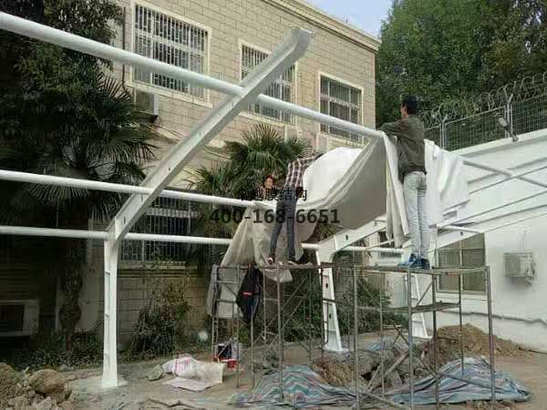 膜結(jié)構(gòu)罩棚/車棚工程項(xiàng)目,10月10日我們卓越膜結(jié)構(gòu)公司人員開始到現(xiàn)場施工。10月17日竣工。
