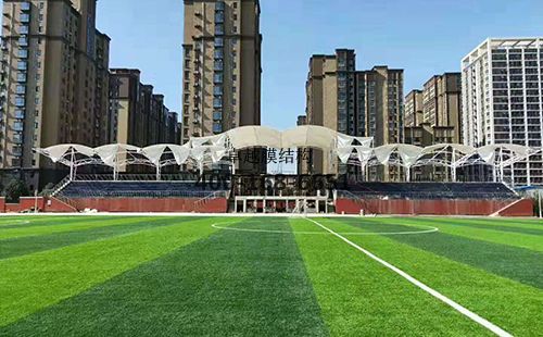 鄭州十八中膜結(jié)構(gòu)看臺/頂棚項(xiàng)目工程,膜材展開面積為1000平方,工程總造價(jià)******元,膜材單價(jià)***元(保密,具體請咨詢客服,想了解價(jià)格的可以參考《膜結(jié)構(gòu)價(jià)格》)