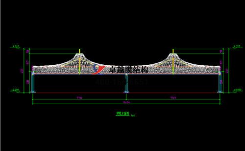 本工程膜材采用白色高端國(guó)產(chǎn)星益達(dá)PVDF高自潔環(huán)保建筑膜材,鋼結(jié)構(gòu)采用更好的標(biāo)準(zhǔn)Q235B鋼材,表面采用酚醛底漆處理,面漆采用白色鋼結(jié)構(gòu)專用快干磁漆。