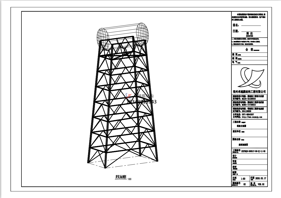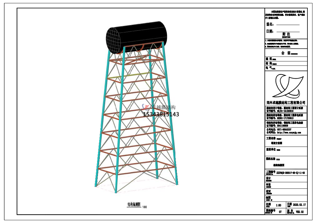 鋼結(jié)構(gòu)水塔三維模型圖,水塔一般居民區(qū)里蓄水作用,有些還是水廠生產(chǎn)工藝的一個(gè)重要組成部分。用于儲(chǔ)水和配水的高聳結(jié)構(gòu),用來(lái)保持和調(diào)節(jié)給水管網(wǎng)中的水量和水壓。主要由水柜、基礎(chǔ)和連接兩者的支筒或支架組成。在工業(yè)與民用建筑中,水塔是一種比較常見(jiàn)而又特殊的建筑物。它的施工需要特別精心和講究技藝,如果施工質(zhì)量不好,輕則造成永久性滲漏水,重則報(bào)廢不能使用。