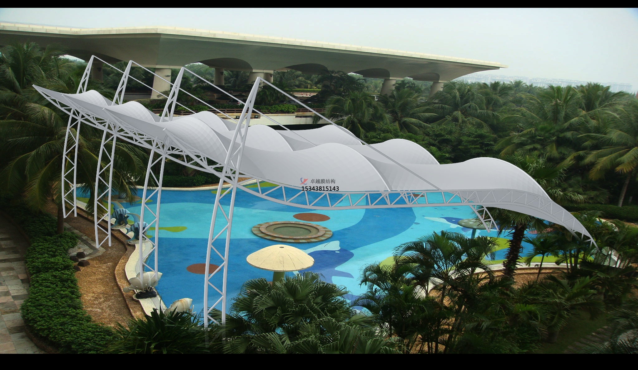 結(jié)合整體環(huán)境,建造出標志性的形象工程,并且實用性強、應(yīng)用領(lǐng)域廣泛。既可應(yīng)用了大型公共設(shè)施,如體育場館的屋頂系統(tǒng)、機場大廳、展覽中心、購物中心、停車場、站臺設(shè)施等。又可應(yīng)用于休閑設(shè)施、工業(yè)設(shè)施、入口廊道以及標志性或景觀性的建筑、小品等。