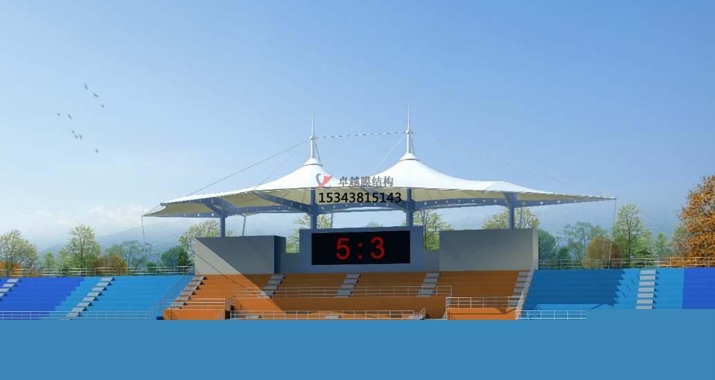 膜結(jié)構(gòu)體育看臺(tái)的帽頂是整個(gè)結(jié)構(gòu)的重要組成部分,它不僅能夠?yàn)橛^眾提供遮陽(yáng)擋雨的功能,還能增強(qiáng)整個(gè)結(jié)構(gòu)的美觀度和視覺效果。