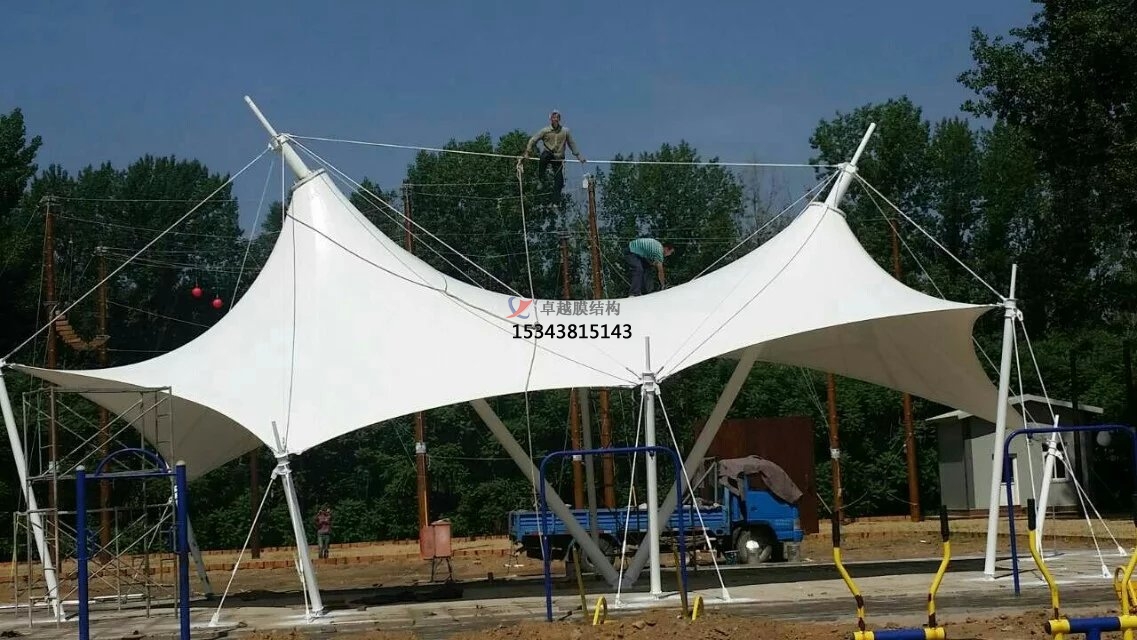 膜結(jié)構(gòu)遮陽棚前期規(guī)劃:膜結(jié)構(gòu)遮陽棚前期需要根據(jù)使用需求、環(huán)境因素來做規(guī)劃。明確遮陽棚的使用場景和功能需求,例如是用于商業(yè)廣場、停車場、體育場,還是私人庭院等。不同的使用場景對遮陽棚的規(guī)模、形式和功能有不同的要求。考慮遮陽棚所處的地理位置、氣候條件等。如在多風(fēng)地區(qū),要加強(qiáng)結(jié)構(gòu)的抗風(fēng)設(shè)計(jì);在陽光強(qiáng)烈的地區(qū),需選擇具有良好遮陽和隔熱性能的膜材。同時(shí),還需考慮周邊的建筑風(fēng)格和景觀環(huán)境,使遮陽棚與周圍環(huán)境相協(xié)調(diào)。