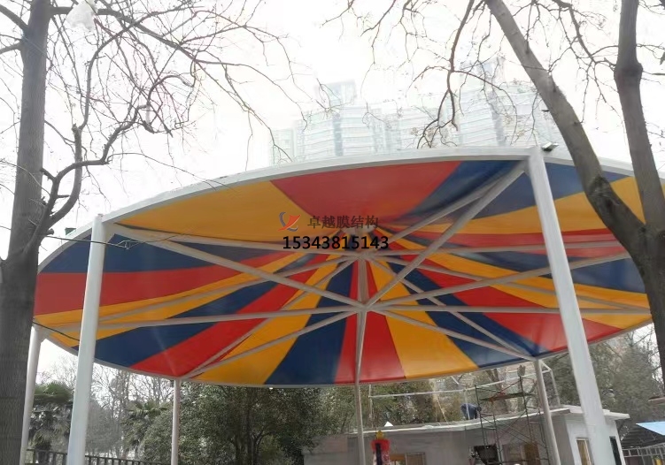 膜結(jié)構(gòu)遮陽棚結(jié)構(gòu)設(shè)計(jì):其結(jié)構(gòu)設(shè)計(jì)主要從找形分析、荷載計(jì)算、支撐體系、形態(tài)創(chuàng)新、膜材選擇等方面出發(fā)。找形分析,通過力密度法、動力松弛法或非線性有限元法確定膜材空間形態(tài),確保合理受力分布與美學(xué)效果。荷載計(jì)算,重點(diǎn)考慮風(fēng)荷載、雪荷載及自重,采用有限元法進(jìn)行靜力與動力分析,避免膜面受壓或局部應(yīng)力集中。支撐體系,選擇合適的支撐結(jié)構(gòu)形式,如鋼結(jié)構(gòu)、鋁合金結(jié)構(gòu)等。支撐結(jié)構(gòu)應(yīng)具有足夠的強(qiáng)度、剛度和穩(wěn)定性,能夠可靠地承受膜面?zhèn)鱽淼暮奢d。常見的支撐方式有立柱支撐、懸索支撐、框架支撐等。形態(tài)創(chuàng)新,結(jié)合曲線、弧線等元素,設(shè)計(jì)可調(diào)節(jié)遮陽棚,適應(yīng)不同光照與使用需求。半透明膜材與光影結(jié)合,營造柔和氛圍,兼具遮陽與景觀功能。膜材選擇,根據(jù)遮陽棚的使用要求和環(huán)境條件,選擇合適的膜材。膜材應(yīng)具有良好的耐久性、抗紫外線性能、自潔性能、防火性能等。常用的膜材有聚四氟乙烯(PTFE)膜、聚酯纖維基 PVC 膜、乙烯 - 四氟乙烯共聚物(ETFE)膜等。