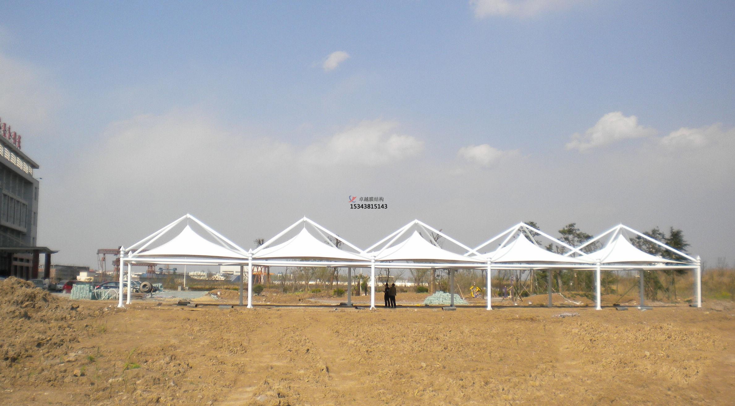 膜結(jié)構(gòu)建筑,在建筑行業(yè)引起了不小的轟動。在隨后的幾十年,建筑景觀膜結(jié)構(gòu)遮陽棚得到了迅猛的發(fā)展。景觀膜結(jié)構(gòu)遮陽棚大部分由 鋼材和索構(gòu)成,另外與結(jié)構(gòu)相結(jié)合的膜材也逐漸走向功能化、智能化。膜材具有造型輕巧自由、美觀;透光、節(jié)能、環(huán)保,優(yōu)良的阻燃性能;防污自潔性能;安全、 壽命長等優(yōu)點。基于這些優(yōu)點,建筑膜材脫穎而出,景觀膜結(jié)構(gòu)遮陽棚被稱為“21世紀(jì)的建筑”,應(yīng)用于大型體育場館、入口廊道、購物場、娛樂場、停車場、展覽會場、植物觀光園等建筑。