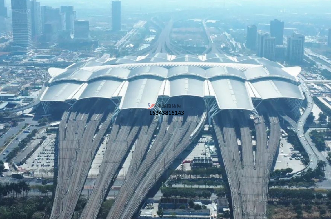 結(jié)構(gòu)輕盈:膜材料自重輕,配合高強(qiáng)度的輔助結(jié)構(gòu),如鋼架、鋼索等,能夠輕松覆蓋大跨度空間,滿足高鐵站對空間的需求。