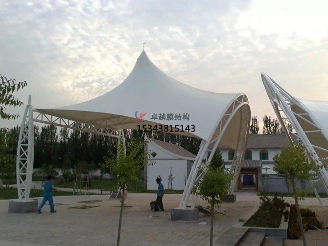 (3)C類型景觀膜結(jié)構(gòu)遮陽棚材料是聚酯長(zhǎng)絲布基上涂聚氯乙烯樹脂(PVC),這種景觀膜結(jié)構(gòu)遮陽棚材料受自然條件如日曬雨淋等影響較大,一般使用壽命為10年至15年,是難燃材料。