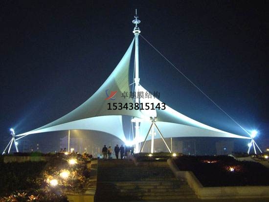 一個城市的中心區(qū)反映一個城市的地理風(fēng)貌和民族風(fēng)情,同時,也是一個城市文化發(fā)展程度的標(biāo)志。而景觀設(shè)計要求其具有廣泛的可讀性、雅俗共賞,既有超凡脫俗的藝術(shù)價值,又能使大眾喜聞樂見與大眾息息相通。張拉膜以其鮮明的個性和標(biāo)識性,應(yīng)用于城市小品設(shè)計中。