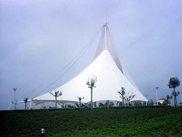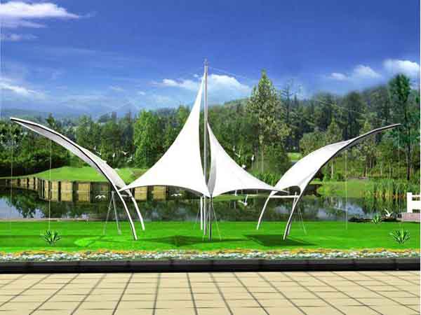 2、景觀膜結(jié)構(gòu)是目前發(fā)展很快的一種新型空間結(jié)構(gòu),是一種效率極高的張力集成體系,可以充分發(fā)揮鋼索的強度與張拉整體結(jié)構(gòu)的空間作用。它通過鋼骨架、鋼索與膜材共同受力形式穩(wěn)定曲面來覆蓋建筑空間,具有高度的形體可塑性和結(jié)構(gòu)靈活性,即通過對膜材內(nèi)部施加一定的預(yù)張力,使其具備了抵抗外荷載能力,從而充當結(jié)構(gòu)材料的一種結(jié)構(gòu)體系。我公司先后在寧波地區(qū)承接了寧波新世界廣場景觀、寧波時代廣場景觀、寧波工業(yè)園區(qū)景觀小品的設(shè)計施工,簡介如下: