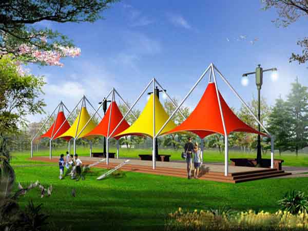 2、膜結構它是一種建筑與結構完美結合的結構體系,是用高強度柔性薄膜材料與支撐體系相結合形成的具有一定剛度的穩(wěn)定曲面,能承受一定外荷載的空間結構形式。更好的膜結構設計是結構與外形的有機融合,使其顯得了類拔萃,同時與自然環(huán)境、歷史及現代的城市景觀有機結合。輕型結構可以看成是大型的雕塑作品,可為其周邊空間增添活力,成為周圍環(huán)境的補充和焦點 。