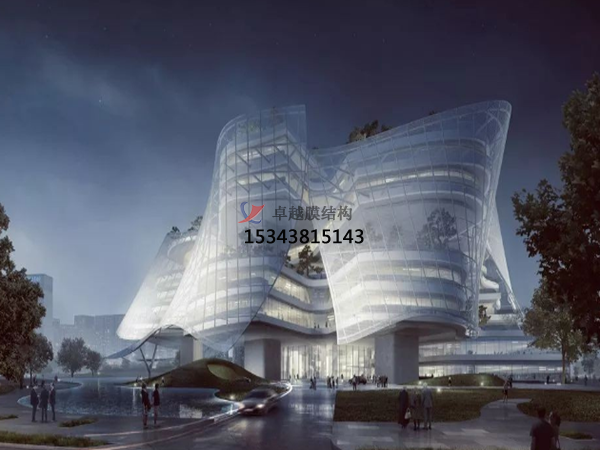 膜結(jié)構(gòu)建筑具有藝術(shù)性,充分發(fā)揮建筑師的想象力,又體現(xiàn)結(jié)構(gòu)構(gòu)件清晰受力之美。由于膜材具有一定的透光率,白天可減少照明強度和時間,能很好的節(jié)約能源。同時夜間彩燈投射形成的絢爛景觀也能達到很好的宣傳效益。