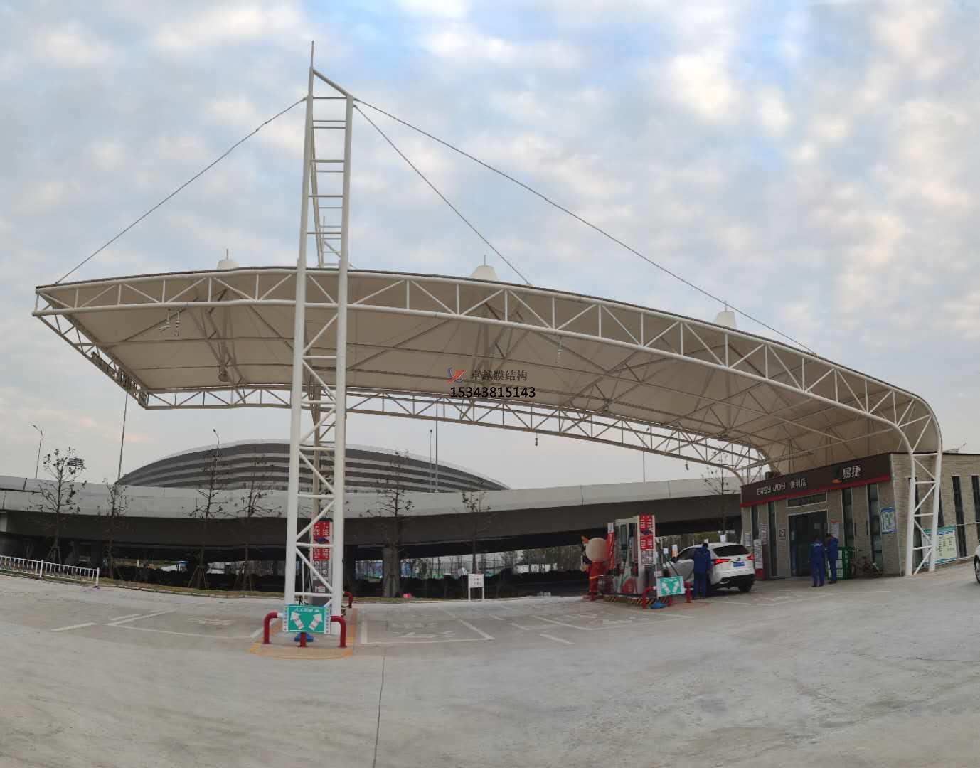 加油站膜結(jié)構(gòu),一般是指安裝在加油站的膜結(jié)構(gòu)頂棚。膜結(jié)構(gòu)頂棚因其自重輕,具有良好的受力特點,所以成為大跨度空間結(jié)構(gòu)的主要形式之一,加油站膜結(jié)構(gòu)也屬于其范疇。