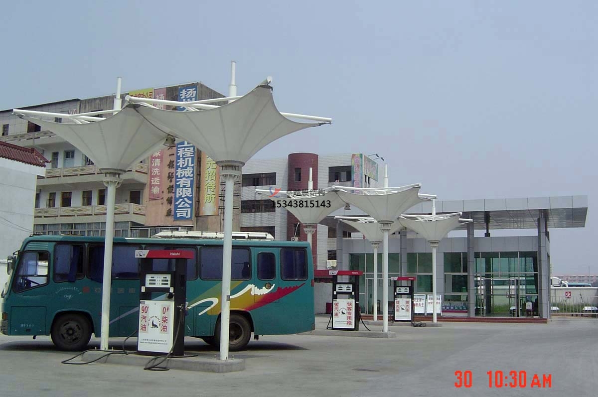工程概況:公司主營業(yè)務(wù)范圍包括:實(shí)業(yè)投資及投資管理;石油、天然氣的勘探、開采、儲運(yùn)(含管道運(yùn)輸)、銷售和綜合利用;煤炭生產(chǎn)、銷售、儲存、運(yùn)輸;石油煉制;我們?yōu)樵摷佑驼驹O(shè)計(jì)建造了張拉膜雨棚,進(jìn)一步提升了加油站的環(huán)境,為加油站提供了極大的便利。
