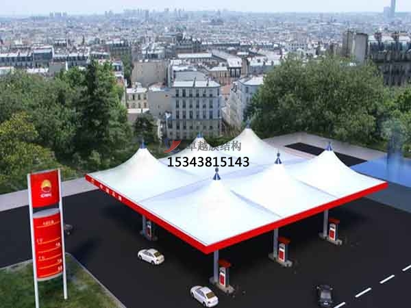 一、造型獨(dú)特,辨識(shí)度高,由于膜材重量輕,適合加油站這種大跨度的建筑,而且是采用張力結(jié)構(gòu)所以在造型設(shè)計(jì)上具有很大的優(yōu)勢,可以實(shí)現(xiàn)非常具有藝術(shù)氣息的造型。