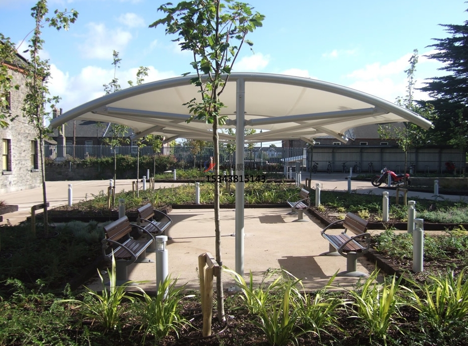 遮陽與擋雨:在戶外公共空間中,景觀膜結構常被用作遮陽篷、雨篷或涼亭,為游客提供舒適的休憩環(huán)境。其大跨度的設計能夠覆蓋較大的區(qū)域,滿足不同天氣條件下的使用需求。