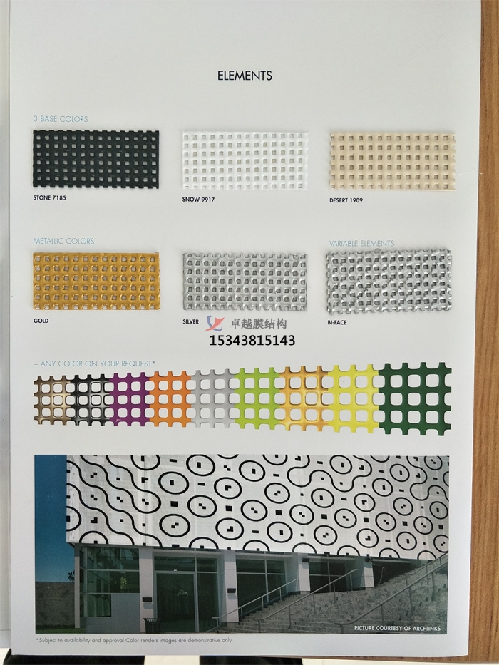法拉利網(wǎng)格膜,拉力3000n左右,適用于小單體項(xiàng)目。大項(xiàng)目分單元安裝。