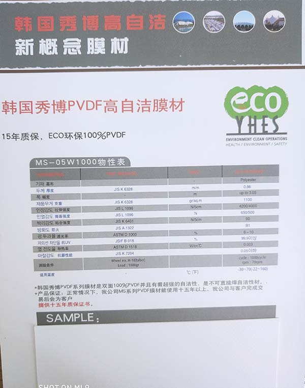 秀博工業(yè)集團全新開發(fā)的納米抗UV,ECM膜材,全新的納米層可使膜材使用壽命達到15 年并不發(fā)黃變色,持久如新。同時通過ECO環(huán)