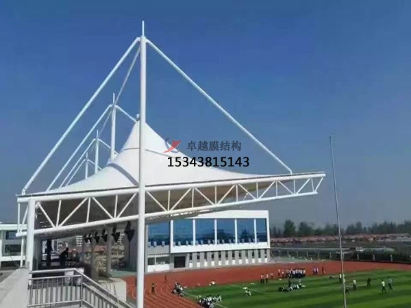 還可以通過更換韌性和光滑度較高的薄膜布料來降低對強風和暴雨的抵抗力,同時增加膜結構看臺的張力,從而增加牢固度。由于形成膜結構的原因是屋頂是按照膜材料的張力來展開的,所以我們可以用不銹鋼管連接屋頂,這樣可以有效的抵御風雨的侵襲。