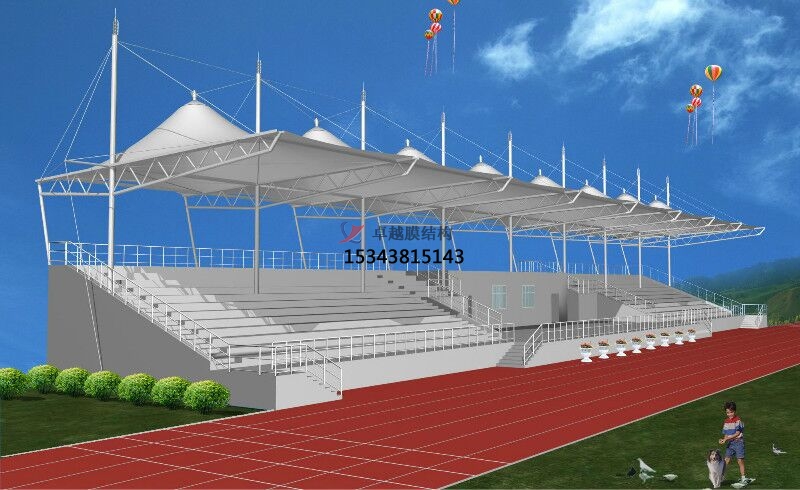 張拉膜看臺(tái)主要用于各類地方體育場(chǎng)主席臺(tái)雨棚,各類學(xué)校體育場(chǎng)看臺(tái)雨棚遮蓋,我公司是國(guó)內(nèi)較早從事大懸挑張拉膜結(jié)構(gòu)看臺(tái)設(shè)計(jì)施工的專業(yè)廠家,下面介紹一下我們?cè)诒本┦兄苓吙h市完工的一些張拉膜看臺(tái)設(shè)計(jì)施工案例,我公司先后在北京周邊承接了北京市第八中學(xué)張拉膜看臺(tái)雨棚、北京市第四中學(xué)張拉膜張拉膜看臺(tái)罩棚、北京中學(xué)張拉膜看臺(tái)遮陽棚等設(shè)計(jì)施工項(xiàng)目,簡(jiǎn)介如下: