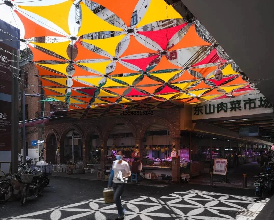 農(nóng)貿(mào)市場的規(guī)模、形狀和布局各不相同,而膜結(jié)構(gòu)頂棚以其靈活多變的特性,能夠很好地適應(yīng)這些不同的需求。無論是大型綜合市場還是小型社區(qū)市場,無論是規(guī)則的長方形還是不規(guī)則的多邊形,膜結(jié)構(gòu)頂棚都能通過精確的計算和設(shè)計,實現(xiàn)完美的覆蓋效果。同時,膜結(jié)構(gòu)頂棚還可以根據(jù)市場的實際需求進行定制,如設(shè)置通風口、采光帶等,以滿足市場的特殊需求。