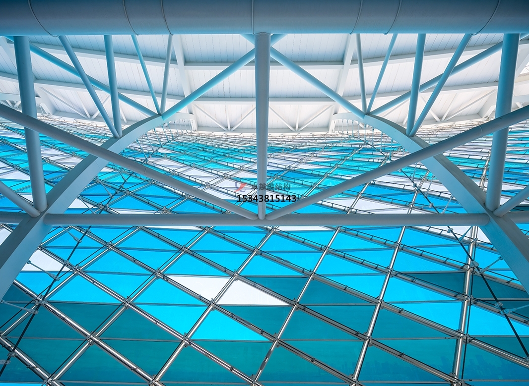 在與單向鋼索垂直的方向設(shè)置鋼梁,并在梁和索交叉的位置設(shè)置支座以約束鋼索的位移,這種結(jié)構(gòu)形式被稱為單層 ETFE 加含跨中支座的單向鋼索結(jié)構(gòu)。通過(guò)設(shè)置跨中支座,可以有效地降低膜面的變形,使得膜結(jié)構(gòu)在承受荷載時(shí)能夠保持更好的形態(tài)穩(wěn)定性。同時(shí),由于支座對(duì)鋼索的約束作用,能夠采用較小的索徑,在滿足結(jié)構(gòu)強(qiáng)度要求的前提下,進(jìn)一步降低材料成本。這種結(jié)構(gòu)形式在一些對(duì)膜面平整度要求較高的建筑項(xiàng)目中具有獨(dú)特的優(yōu)勢(shì),如大型會(huì)議中心的屋頂設(shè)計(jì),能夠確保膜面在各種荷載條件下都能保持良好的狀態(tài),為室內(nèi)提供美觀、穩(wěn)定的空間環(huán)境。然而,該結(jié)構(gòu)形式在設(shè)計(jì)和施工過(guò)程中,需要對(duì)支座的布置和連接方式進(jìn)行精心設(shè)計(jì),以確保其能夠有效地發(fā)揮約束作用。