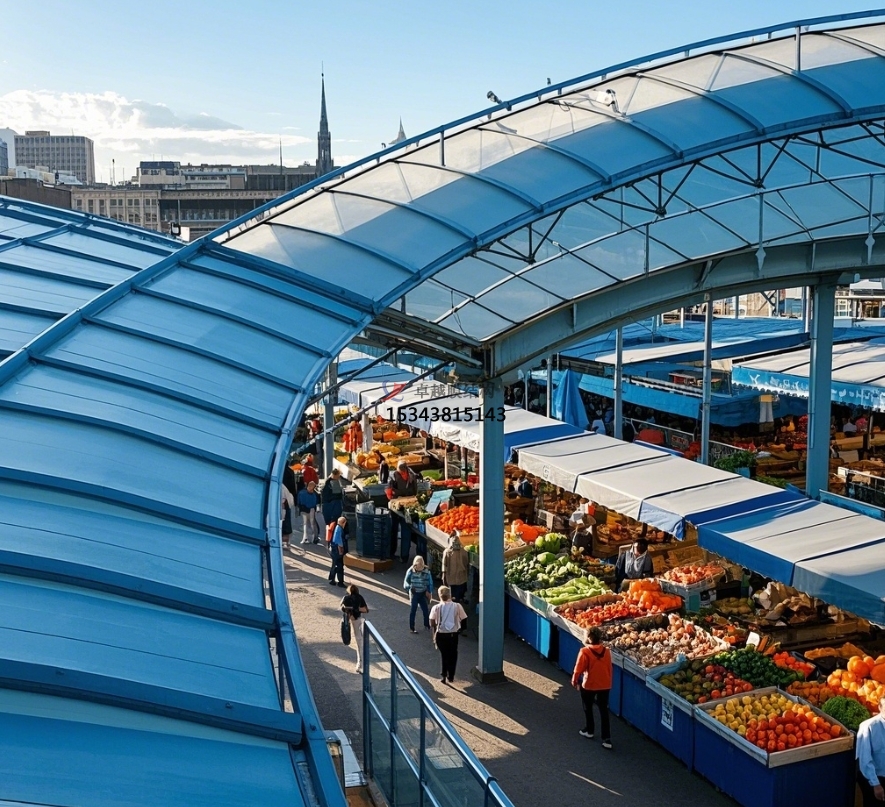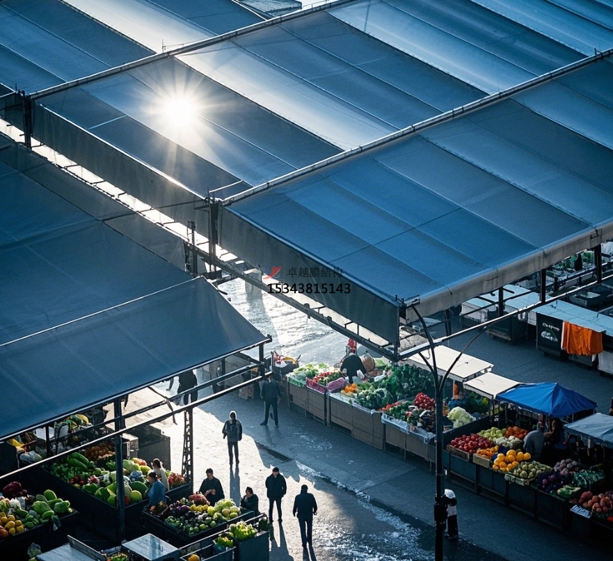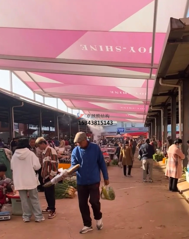 城市中心傳統(tǒng)農(nóng)貿(mào)市場改造:在城市核心區(qū)域,土地資源緊張,傳統(tǒng)農(nóng)貿(mào)市場設(shè)施陳舊、空間局促。膜結(jié)構(gòu)改造方案通過拆除原有老舊頂棚,搭建輕巧、美觀的膜結(jié)構(gòu)頂棚,能在不增加過多占地面積的情況下,優(yōu)化市場空間,提升采光、通風(fēng)效果,改善購物環(huán)境,同時保留傳統(tǒng)市場的煙火氣,讓城市記憶與現(xiàn)代功能完美融合,如北京的部分老城區(qū)農(nóng)貿(mào)市場改造項目,就借助膜結(jié)構(gòu)實現(xiàn)了華麗轉(zhuǎn)身,重新煥發(fā)生機(jī)。