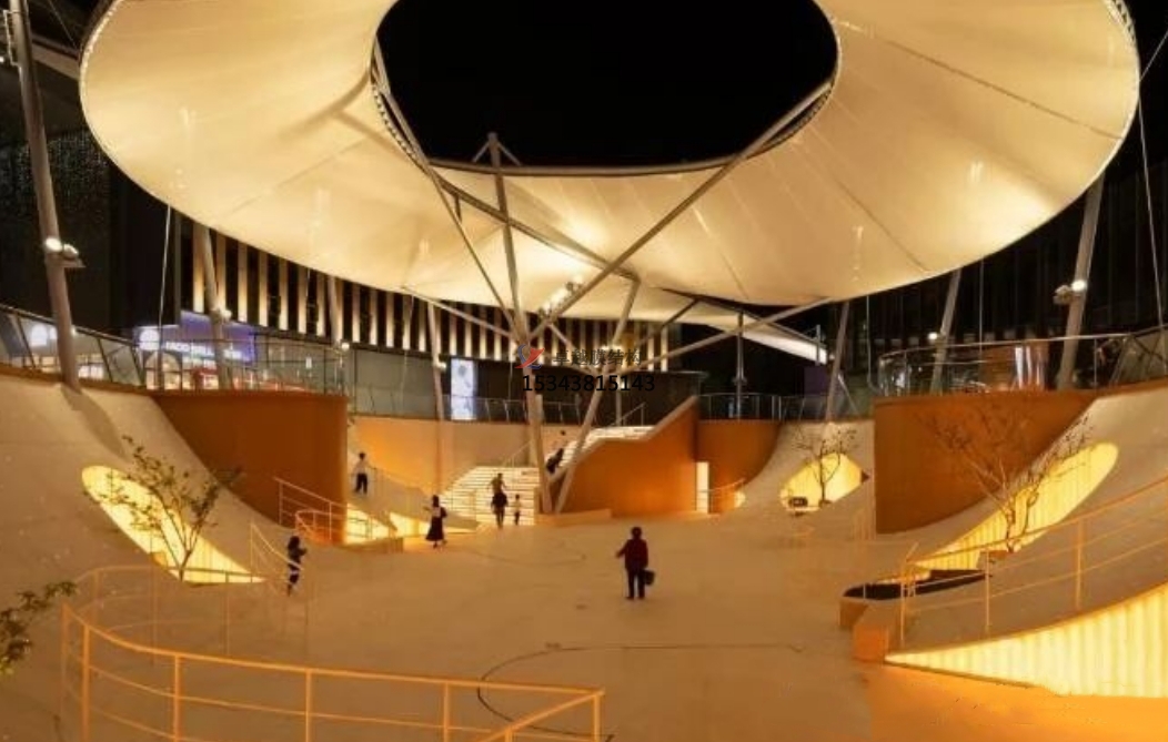 但不管怎么有格調(diào)的下沉式商業(yè)。廣場,它也是一個半露天的公共空間,如果缺乏遮陽避雨設(shè)施,無法提供更加舒適的休閑環(huán)境,因此,在下沉廣場上方增設(shè)頂蓋是非常必要的,而且一個兼具美觀、時尚、實用的頂蓋也是建筑的加分項。