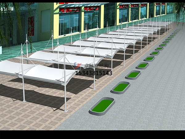 第點(diǎn),膜結(jié)構(gòu)停車棚頂部封板選用茶色(色彩可挑選)陽(yáng)光板封頂,與車棚全體骨架用壓條鉚接固定,耐酸堿腐蝕,有滿足強(qiáng)度對(duì)棚內(nèi)車輛起到保護(hù)效果;