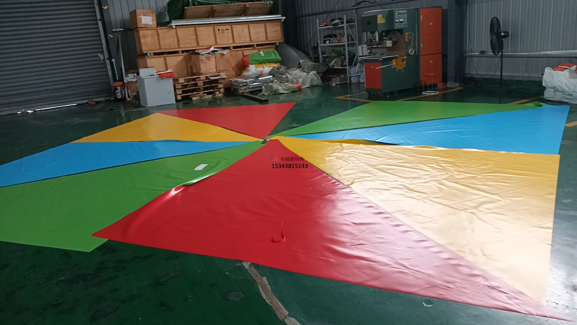 2、裁剪:膜材料的裁剪是膜結(jié)構(gòu)加工的第一步。由于膜結(jié)構(gòu)通常是空間曲面,裁剪就是用平面膜材料表示空間曲面。這一步需要非常高的精度,以確保后續(xù)工序的順利進行。
