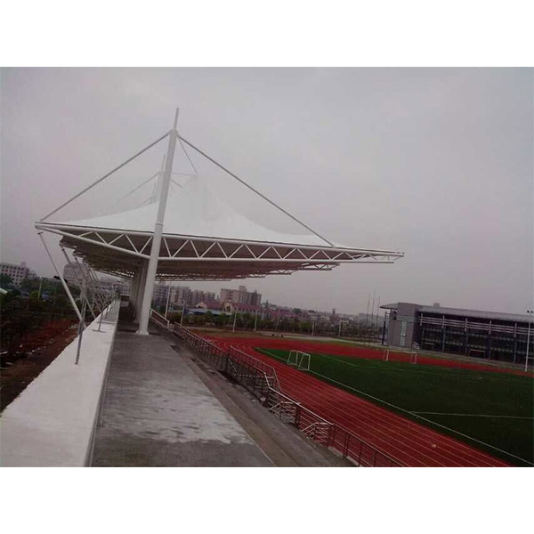 選用膜材拉力:5900N-6900N 鋼構(gòu)選用材料: 鞍鋼生產(chǎn)的Q235B高頻焊管及Q345無縫鋼管 工程施工周期:總工期29日歷天 索膜結(jié)構(gòu)形式:管桁架四邊張拉索膜結(jié)構(gòu)看臺(tái) 工程完工面積:膜材展開面積589㎡" />