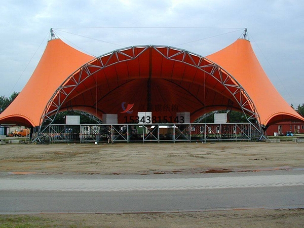 設計師在更初對舞臺膜結構的構造設計時充分發(fā)揮了空間想象,通過不斷的構思及設計靈感往往設計出具有獨特風格的類型。還記得示一膜結構在廣富林公園里建造的舞臺膜結構嗎?那就是一個馬鞍造型的舞臺膜結構,與傳統(tǒng)的舞臺造型相比增加了很多優(yōu)點特性。