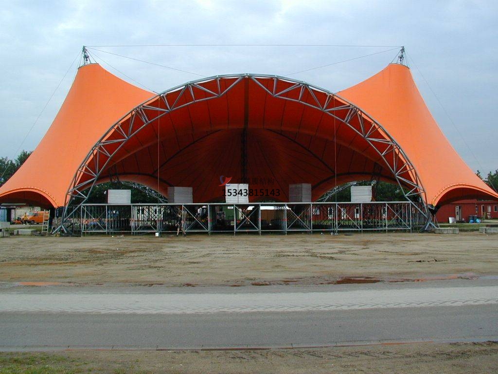 3、易于安裝和拆卸:膜結(jié)構(gòu)舞臺的安裝和拆卸非常方便,可以快速完成,并且對周圍環(huán)境的影響很小。