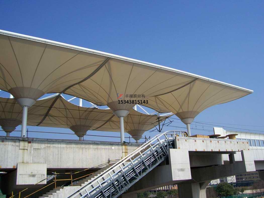 膜結(jié)構(gòu)雨棚屬于軟性材料,本身自動(dòng)輕,耐高溫、抗紫外線,使用壽命長達(dá)15至20年。