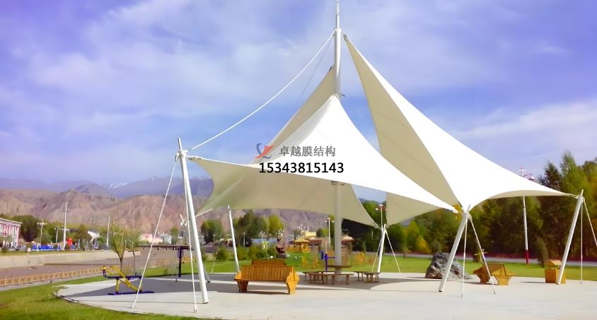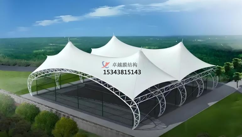 三 膜結(jié)構(gòu)雨棚的應(yīng)用領(lǐng)域:商業(yè)領(lǐng)域,交通領(lǐng)域,體育領(lǐng)域,景觀領(lǐng)域。商業(yè)領(lǐng)域,商場、購物中心、商業(yè)街等的入口、廣場、停車場等位置,可提供遮陽避雨的空間,同時(shí)增加空間利用率,其新穎的造型設(shè)計(jì)成為景觀亮點(diǎn)可吸引顧客,提升商業(yè)氛圍。交通領(lǐng)域,在機(jī)場、火車站的候車廳,高速公路服務(wù)區(qū)、收費(fèi)站、公交站臺(tái)等地方,能為旅客提供舒適的候車環(huán)境。體育領(lǐng)域,大型體育館以及體育看臺(tái)常采用膜結(jié)構(gòu)雨棚,其大跨度特性可滿足視野寬闊無結(jié)構(gòu)遮擋的要求,且膜材透光性可使白天室內(nèi)達(dá)到和室外幾乎一樣的自然效果,體育館、體育場、游泳館等體育場館的入口、看臺(tái)、休息區(qū)等,可保護(hù)觀眾和運(yùn)動(dòng)員免受風(fēng)雨侵襲,增強(qiáng)場館的整體美觀度。景觀領(lǐng)域,公園、廣場、花園、景區(qū)等地方,作為景觀小品或休息設(shè)施,為人們提供休息、觀賞的空間,與自然環(huán)境相融合,增添景觀的現(xiàn)代感,膜結(jié)構(gòu)雨棚與周圍環(huán)境融為一體可創(chuàng)造出浪漫溫馨的空間,在夜間彩燈映射下形成絢麗繽紛的景觀。工業(yè)領(lǐng)域,膜結(jié)構(gòu)廠房具有結(jié)構(gòu)輕便、抗震性好等特點(diǎn),廣泛應(yīng)用于各類工廠,也可用于一些倉庫、污水處理設(shè)施等的覆蓋。