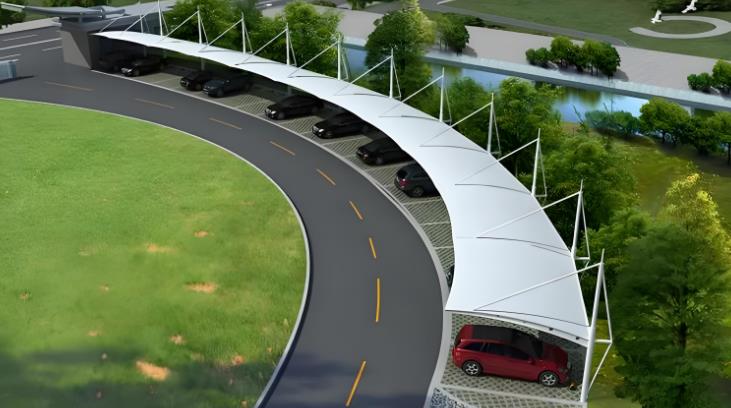 一 膜結(jié)構(gòu)雨棚特點(diǎn)和優(yōu)勢主要體現(xiàn)在造型美觀,自潔性強(qiáng),輕便耐用,施工便捷,環(huán)保節(jié)能。膜材具有良好的可塑性,可設(shè)計(jì)出各種獨(dú)特的造型,如曲線形、球形、錐形等,為建筑增添藝術(shù)美感。膜材料透光率可達(dá)30%,在陽光下不會(huì)變黃或霧化,可實(shí)現(xiàn)自然采光,降低白天照明能耗,同時(shí)提供柔和均勻的光線。膜材料表面防護(hù)涂層如聚氟乙烯等,有著不發(fā)粘的特性,灰塵等污染物可依靠雨水自然沖洗達(dá)到自潔效果,保持雨棚外觀整潔。膜材重量輕,高強(qiáng)度膜材與張拉技術(shù)應(yīng)用減少了雨棚整體重量,使膜結(jié)構(gòu)雨棚抵御風(fēng)雨能力強(qiáng),對(duì)支撐結(jié)構(gòu)要求較低,且高強(qiáng)度膜材配合合理的結(jié)構(gòu)設(shè)計(jì),使其能抵御多種惡劣天氣,使用年限可達(dá)25年以上,膜材強(qiáng)度是普通玻璃的250-300倍,部分采用永久性膜材的車棚可使用三、四十年。相比傳統(tǒng)建筑雨棚,我們的膜材和鋼結(jié)構(gòu)在工廠預(yù)制,縮短工期,現(xiàn)場安裝速度快,施工周期短,對(duì)周圍環(huán)境影響小。同等大小的建筑,采用膜結(jié)構(gòu)成本只相當(dāng)于傳統(tǒng)建筑的二分之一或更少,短期應(yīng)用的大跨度建筑時(shí)更經(jīng)濟(jì)。且膜結(jié)構(gòu)還具有良好的隔熱性能,可減少能源消耗,部分設(shè)計(jì)還可利用太陽能發(fā)電。