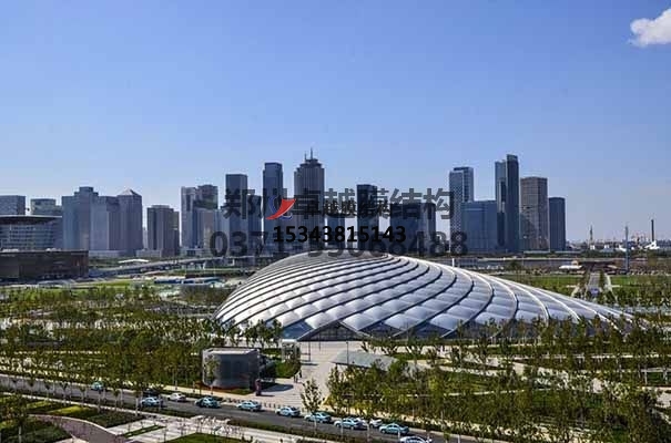 膜結(jié)構(gòu)是一種建筑與結(jié)構(gòu)完美結(jié)合的結(jié)構(gòu)體系。它是用高強(qiáng)度柔性薄膜材料與支撐體系相結(jié)合形成具有一定剛度的穩(wěn)定曲面,能承受一定外荷載的空間結(jié)構(gòu)形式。其造型自由輕巧、阻燃、制作簡易、安裝快捷、節(jié)能、安全等優(yōu)點(diǎn),因而使它在世界各地受到廣泛應(yīng)用。這種結(jié)構(gòu)形式特別適用于大型體育場館、入口廊道、小品、公眾休閑娛樂廣場、展覽會(huì)場、購物中心等領(lǐng)域。