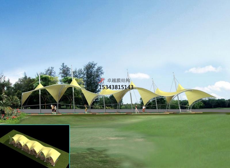 膜結(jié)構(gòu)高爾夫發(fā)球臺遮陽棚效果圖