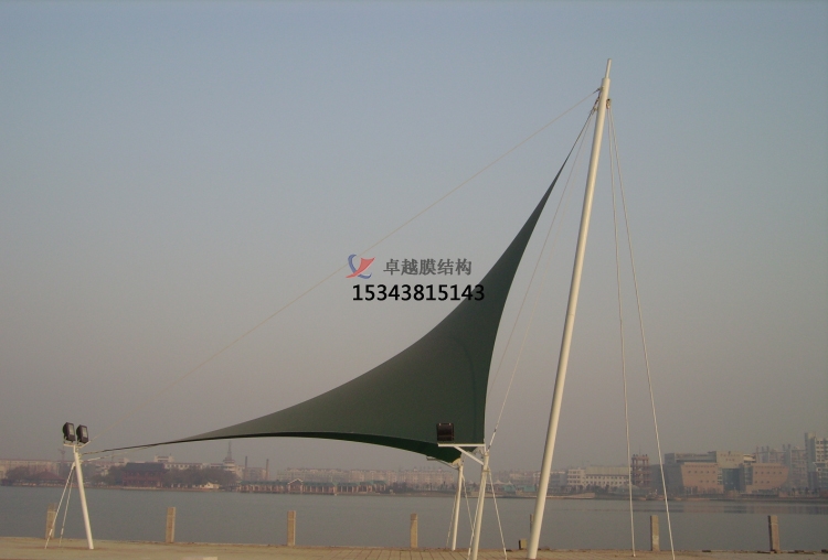 對于膜結(jié)構(gòu)景觀,其施工階段的關(guān)鍵在于各個張拉施工階段的位移控制和內(nèi)力控制,對整個膜結(jié)構(gòu)景觀的施工過程進行的跟蹤模擬計算能夠?qū)κ┕み^程中每步的施工狀態(tài)進行校核,將該施工階段的誤差盡可能的控制于允許的范圍內(nèi),規(guī)避將較大的偏差帶入下一施工工序,從而造成終端累積偏差過大而導致張拉成型結(jié)構(gòu)的內(nèi)力和位置與原設(shè)計不吻合,因此,施工全過程的計算機模擬具有以下目的與意義∶