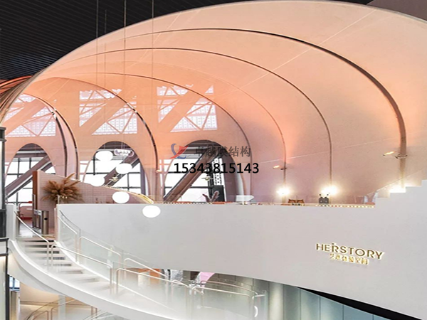場館看臺膜結構材料特性與選擇:其材料具有高透光性與自潔功能、耐久性保障。材料采用ETFE膜(0.25毫米厚)或PTFE涂層玻璃纖維膜,透光率可達40%-60%,減少人工照明依賴,同時表面防護涂層使雨水沖刷即可保持清潔。部分場館使用PVC材料,兼具抗紫外線、阻燃及耐候性,適用于多種氣候環(huán)境。通過抗風壓、抗雪荷載及防火測試,并結合鋼索網(wǎng)或鋼結構框架提升穩(wěn)定性。材料選擇注重環(huán)保性,如ETFE膜可回收,符合綠色建筑趨勢。